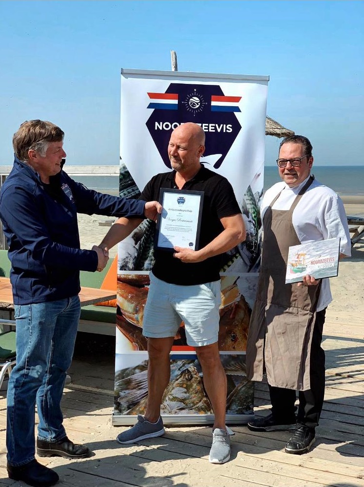 Op 18 april verwelkomt Nico Waasdorp (links) Rolf Vooges (rechts) van Vooges Restaurants als nieuwe ambassadeur voor Stichting Noordzeevis uit IJmuiden. Vooges is eigenaar van meerdere restaurants in Noord-Holland. In zijn zaken maken ze het liefst gebruik van verse producten uit de regio, waarbij de link snel gelegd is met Noordzeevis. Een voor de hand liggende keuze om dan ook ambassadeur te worden voor de Stichting Noordzeevis uit IJmuiden.